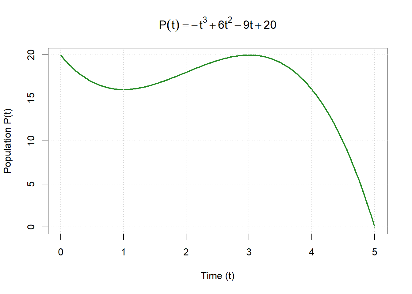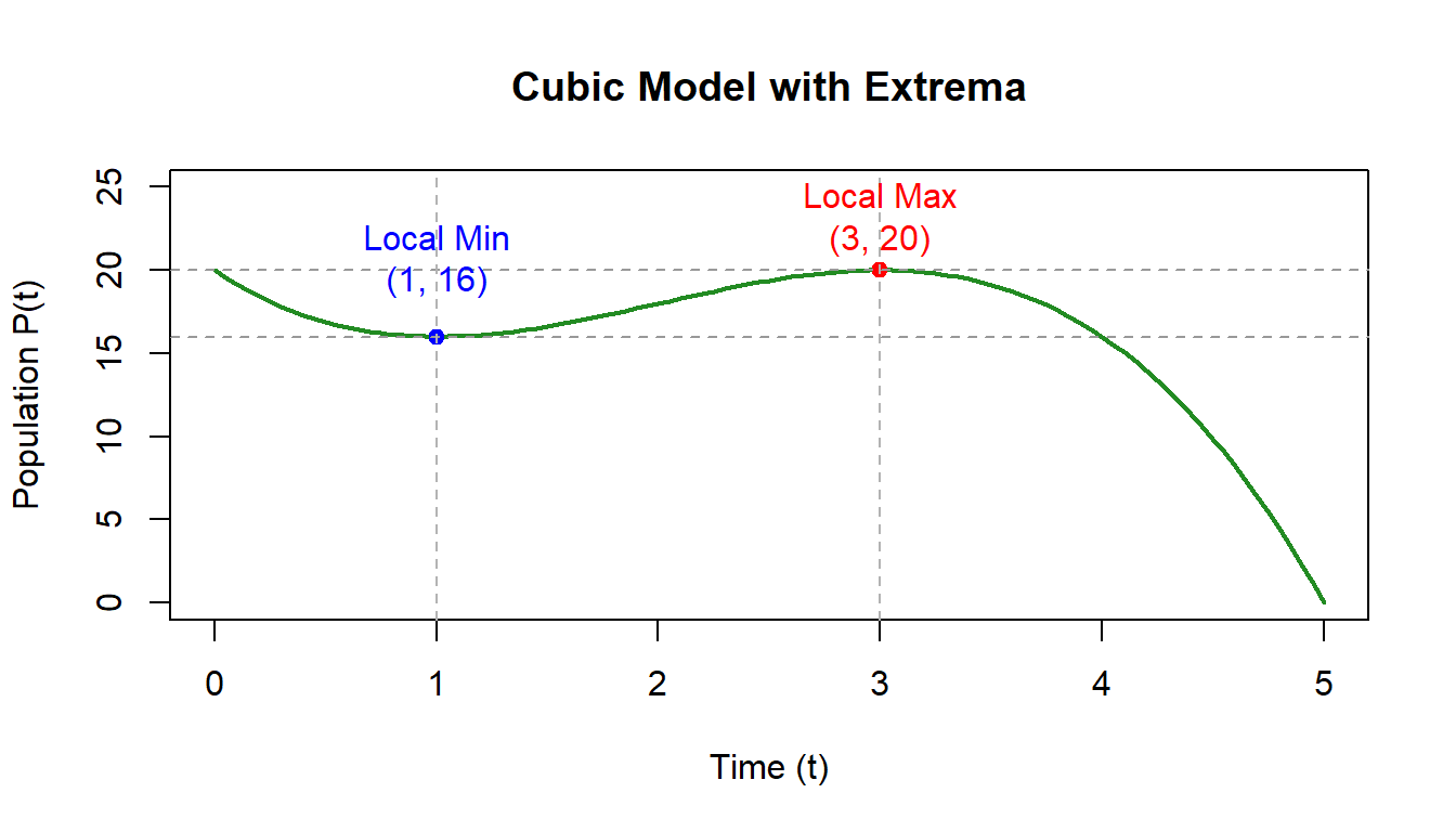 | \(f(x) = x^3 - 6x^2 + 9x\) | Population growth with competition |