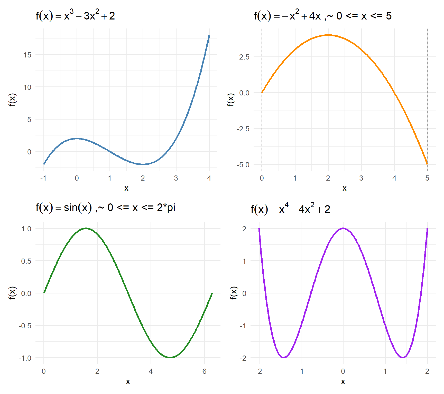| \(f(x) = x^4 - 2x^2\) | Potential energy curve of a bistable system |