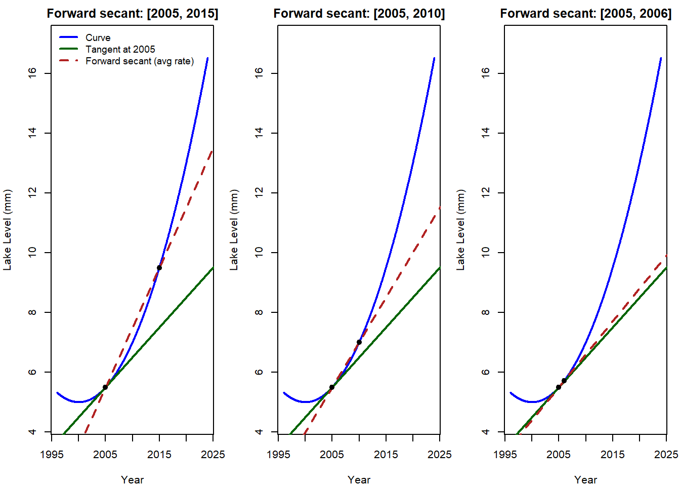 Having practiced the mechanics of the limit definition, you now have the tools to calculate derivatives from first principles. In the next section, we’ll step back from the algebra and focus on the bigger picture: how rates of change help us interpret environmental systems and real-world data.