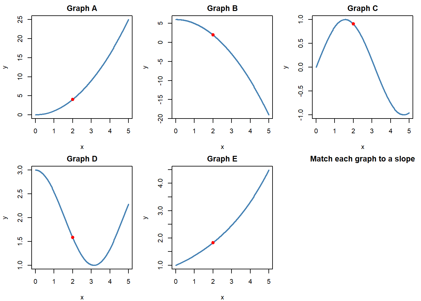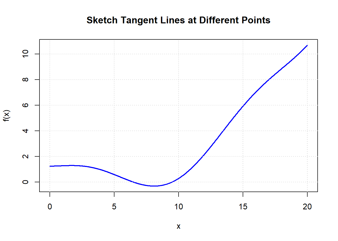The slopes from the left and right are different, so the derivative does not exist at \(x=1\).8.Estimate from Real Data