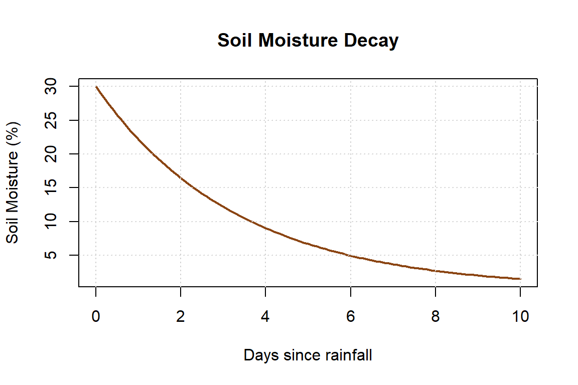 Below is a plot of soil moisture over time after a rainstorm.