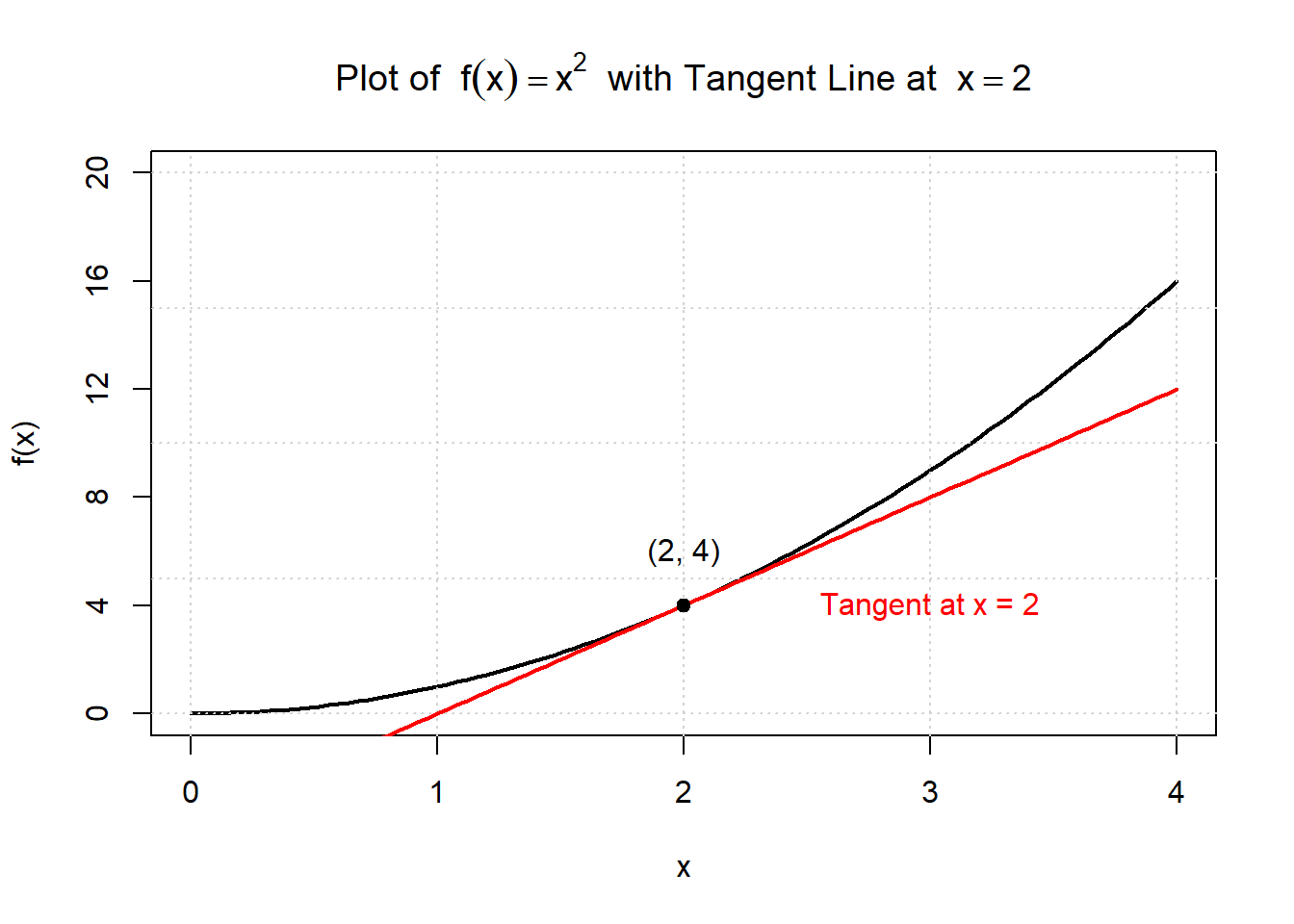 \[ f(4)=2,\quad f(4.001)\approx \sqrt{4.001}\approx 2.00025. \] \[ f'(4)\approx \frac{2.00025-2}{0.001}\approx 0.25. \]