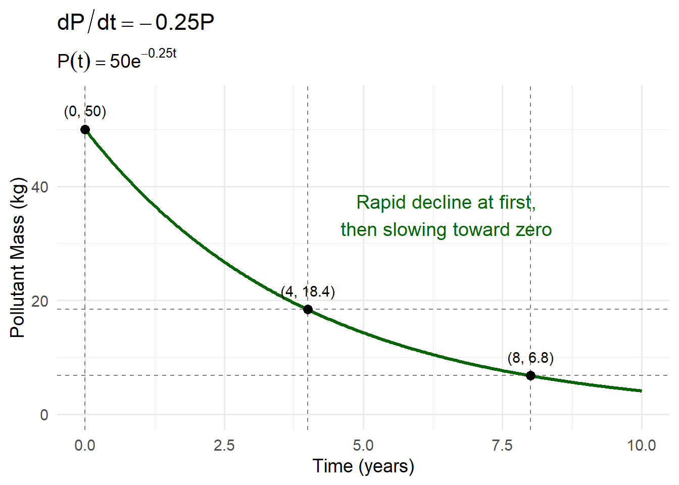 - The rate of breakdown is proportional to how much pollutant is present.