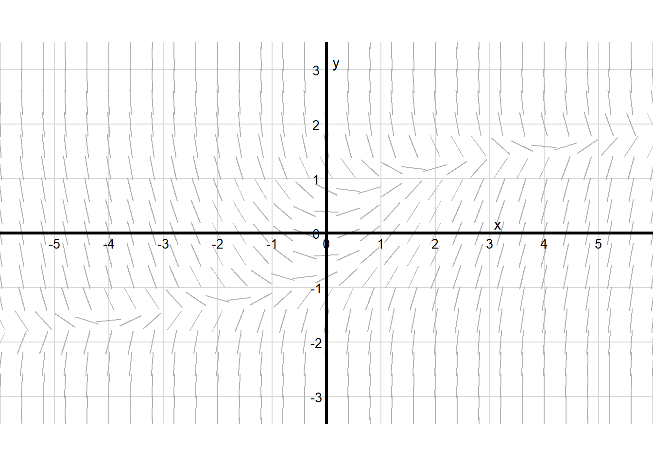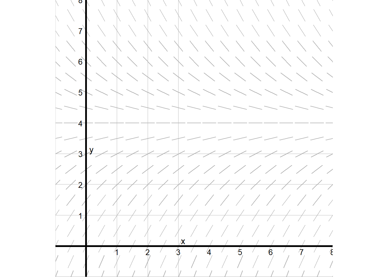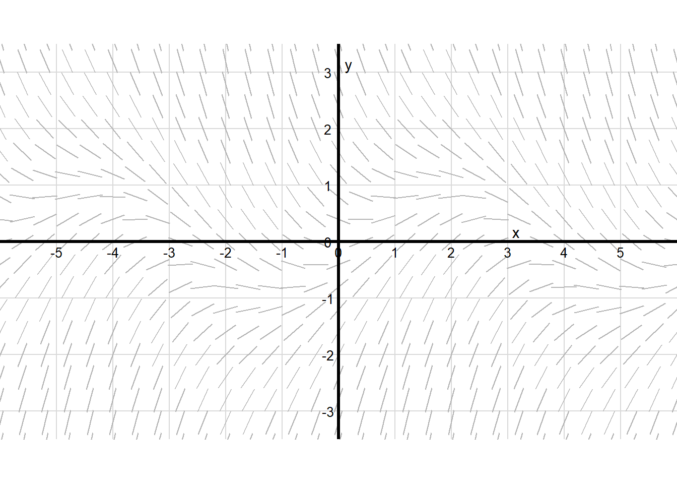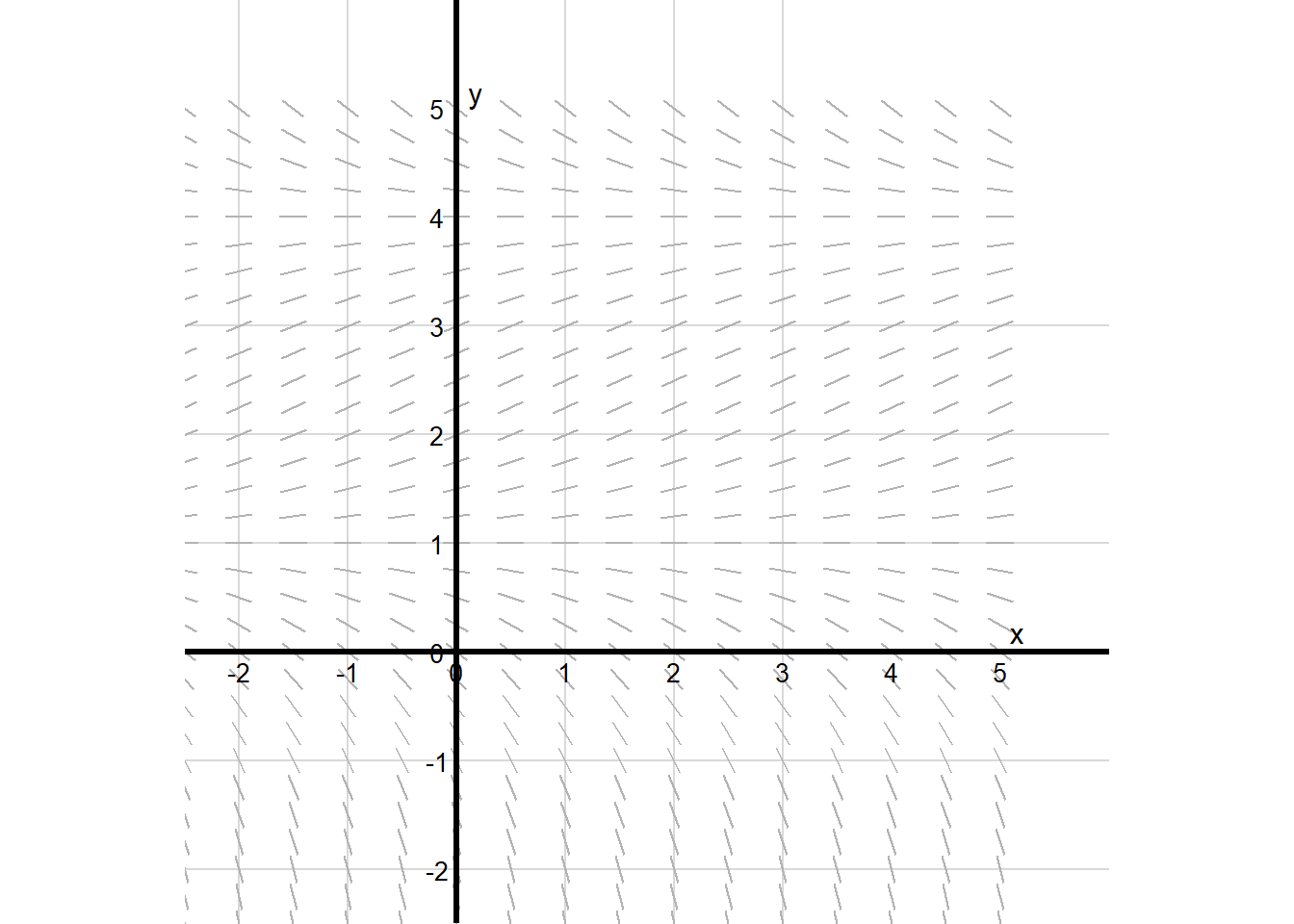 5) If a slope field has vertical stripes where slopes are the same for all \(y\) values at a given \(x\), the differential equation most likely has the form: