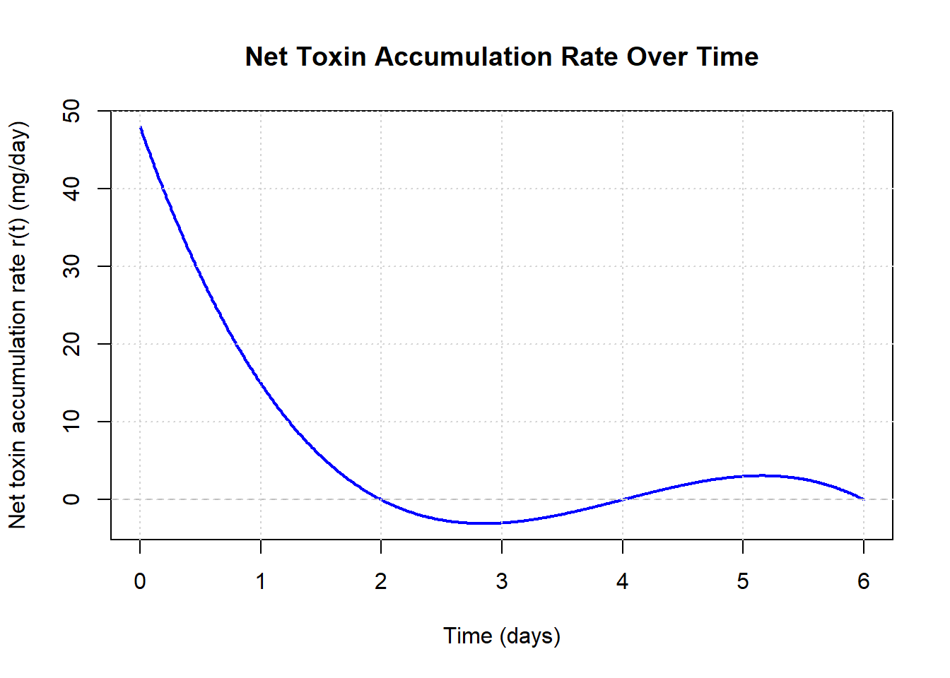 - \(r(t) < 0\): net elimination (toxin is decreasing in the fish)