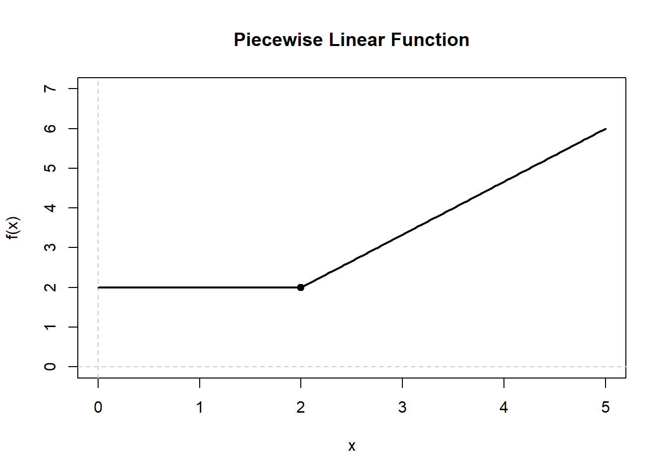 - From \(x = 0\) to \(x = 2\): \(f(x) = 2\)